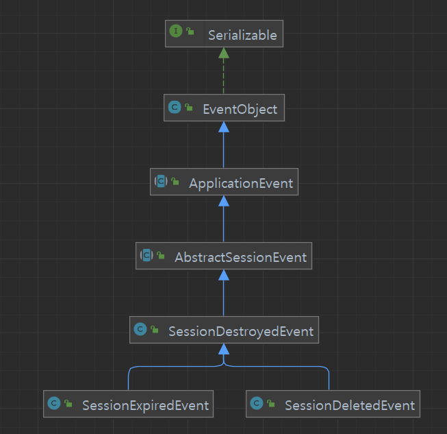 SessionDeletedEvent, SessionExpiredEvent 모두 SessionDestroyedEvent을 상속받은 자식 객체이다.